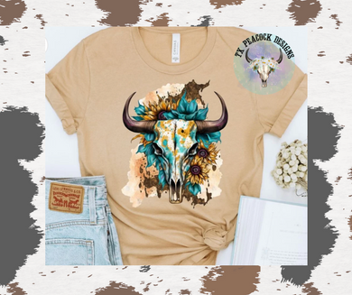 Cow Skull... Teal and Sunflowers